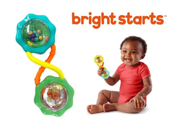 カラフルなビーズが入ったバーベル型のラトル。片方は内側がミラーになっているので覗きこむと自分の姿が写りこみます。握ったり、ふったり、のぞきこんだりして、赤ちゃんをあきさせません。