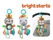 カサカサ音、リング、ラトル、葉っぱ型の歯固め、かがみ、サテン地のタグなど、赤ちゃんの好奇心をくすぐる仕掛けがたくさん付いたおもちゃ。