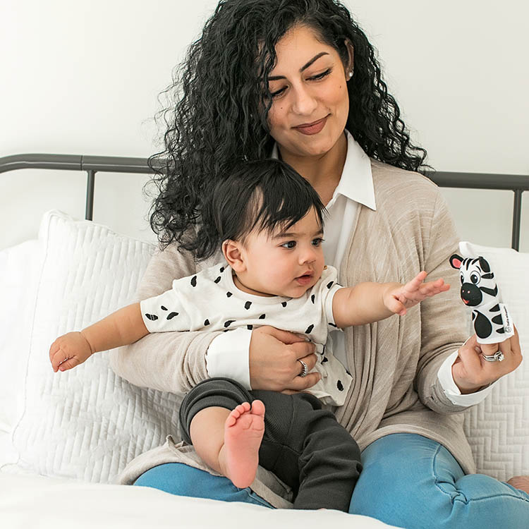 シマウマとパンダのラトル入り指人形。